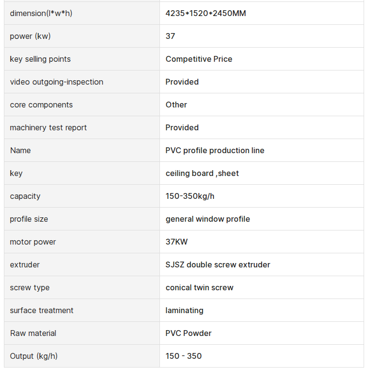 YF series PVC profile production line suitable to produce PVC profile multi-hole cable duct(4 hole, 6 hole, 7 hole, 9 holeoption), according to different profile section and mold to choose different conical or parallel twin screw extruder and provide relative vacuum sizing tank, haul-off, cutter, stack auxiliary equipment. The capacity of main extruder is from 150kg/h to 450kg/h for option. Special design for haul-off by particular up and down technology of our company, working table stable, reliable and heavy duty force. Vacuum sizing tank having particular big eddy flow cooling system for cooling and sizing easy for cooling and sizing easy for high speed extruding necessary.